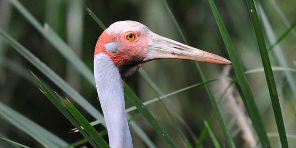 Brolgas are a large, grey crane with a red, featherless head and a beautiful, grey crown. They are commonly found throughout northern and eastern regions of Australia in large open wetlands, grassy plains and coastal mud flats.
