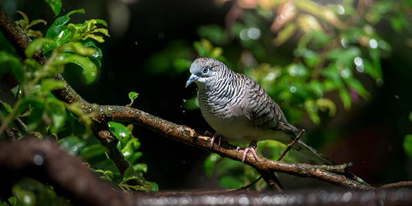 The peaceful dove is found in Asia, south Burma, the Malay Peninsula, eastern Papua New Guinea and Australia. They are one of the most recognised dove species due to their wide distribution and distinct ‘doodle-doo’ call! They can be identified by their small stature, grey plumage and dark barring across their chest and back. Peaceful doves will forage in open areas for grass seeds and small insects.