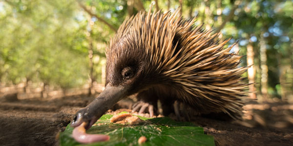 Echidnas are found all over Australia, including Tasmania. They have adapted to thrive in many harsh, Australian environments. They have a spiky exterior consisting of spines made from keratin – the same stuff as our hair and fingernails! These spines are perfect for protecting themselves against potential predators. Echidnas are preyed upon by foxes, goannas and feral cats. If under attack or feeling threatened, the echidna will roll into a ball, protecting their body with those sharp spines. The echidna will use their powerful feet and claws to dig into the earth, leaving only their spiky exterior revealed. Crikey! It’s genius!