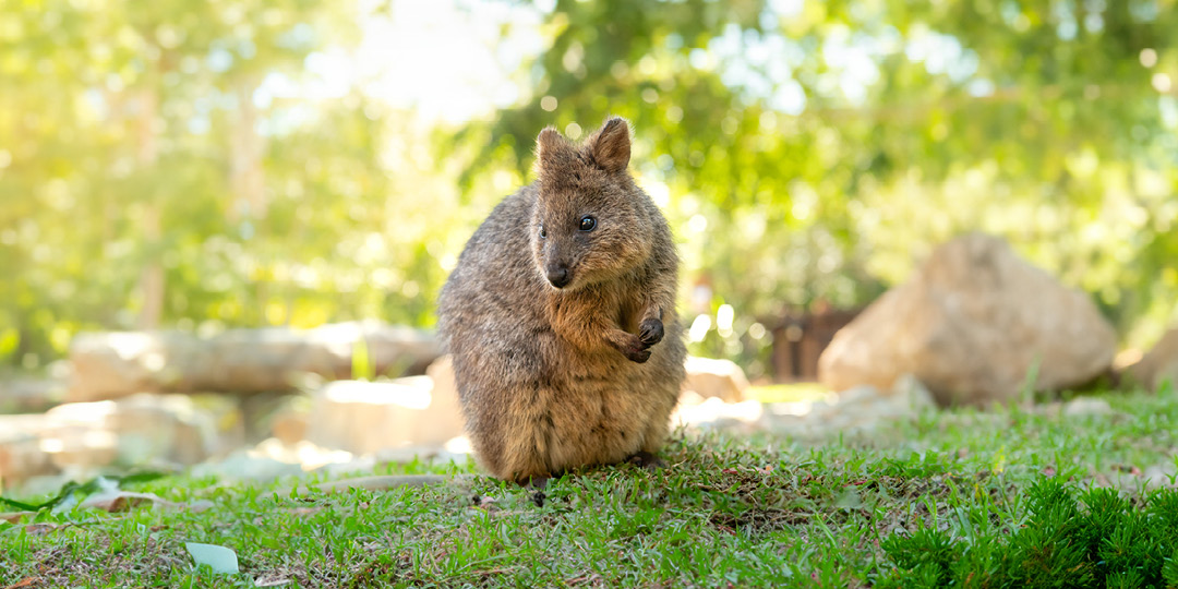 These charismatic marsupials, known for their friendly demeanour and heart-warming smiles, are endemic to Australia and reside in shrub-lands or dense vegetation located streamside. Quokkas are one of the smallest wallabies and closely related to another iconic native species, the kangaroo.
