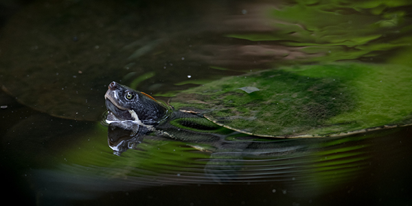 As their name suggests, these turtles are found in the Brisbane River but are actually one of the most commonly observed freshwater turtles that inhabit any waterway of southeast Queensland! They are identifiable by their brownish-olive carapace and distinct yellow stripe on the side of their face. They are frequently spotted with algae growing on their backs; this is perfect for camouflaging into their environment. Brisbane River turtles are omnivores and have a varied diet consisting of whole fish, snails, insect larvae, worms, prawns, mussels and yabbies, as well as vegetation and algae. Did you know that they do not have any teeth? They will use their sharp, serrated beak to pull apart and consume their prey!