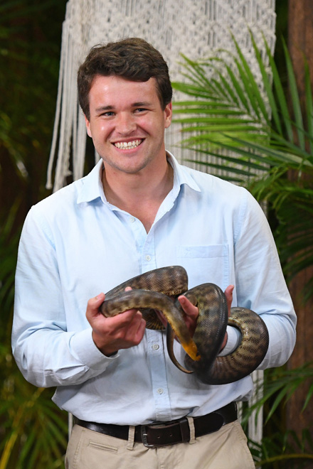 Hi, my name is Lionel and I’m a spectacular woma python. I am a true-blue Aussie, native to central areas of Australia – Aussie Aussie Aussie, Oi Oi Oi! I’m incredibly photogenic as you would have seen when Chandler and I walked down the aisle together during his wedding here at Australia Zoo. I always smile!