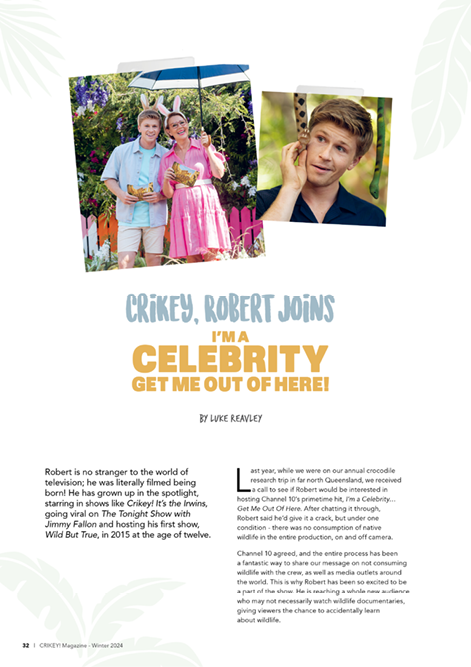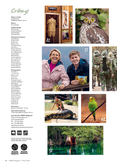 “ Our aim is to give readers a behind-the-scenes look into our world at Australia Zoo and everything else that branches from it. Steve Irwin believed that exciting education was a vital part of protecting wildlife, we are so pleased to be carrying on that message. Crikey! Magazine is perfect for all ages, but best enjoyed as a family. "