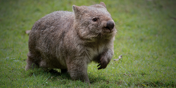 Because wombats are marsupials, they have a pouch for raising their young, called joeys. Their pouch faces backwards to avoid it filling up with soil as they burrow! They have a strong cartilage plate on their rump which is used as the perfect defense tool. If approached by a predator whilst underground, the wombat will use that cartilage plate as a door, blocking the entrance to their burrow. In order to escape predators when above ground, wombats have the ability to run at speeds of 40 kilometres (25 miles) per hour!
