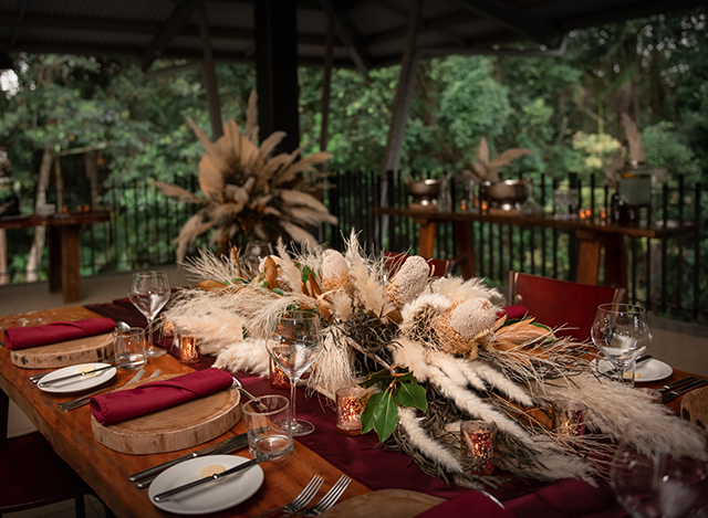 The Crikey Café is the perfect location for your wedding celebrations. Guests will be seated at our unique handcrafted tables made from Queensland hardwood; you may even be sitting at a table made by Steve Irwin himself! The Crikey Café has soaring ceilings and various zones for dining, socialising and plenty of space to dance and spread your wings! With stunning festoon lighting strung above the tables, ample room to dance and a view over our world-famous Crocoseum your guests will be in for a night they won’t forget!