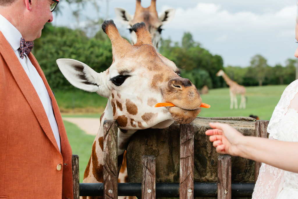 - Private animal experience for the couple. Get up close and personal with some of our beautiful animals at Australia Zoo. Feed one of our gorgeous giraffes while our professional wedding photographer captures the action.