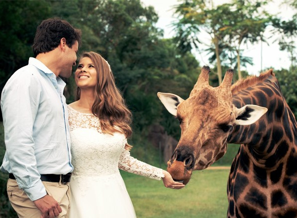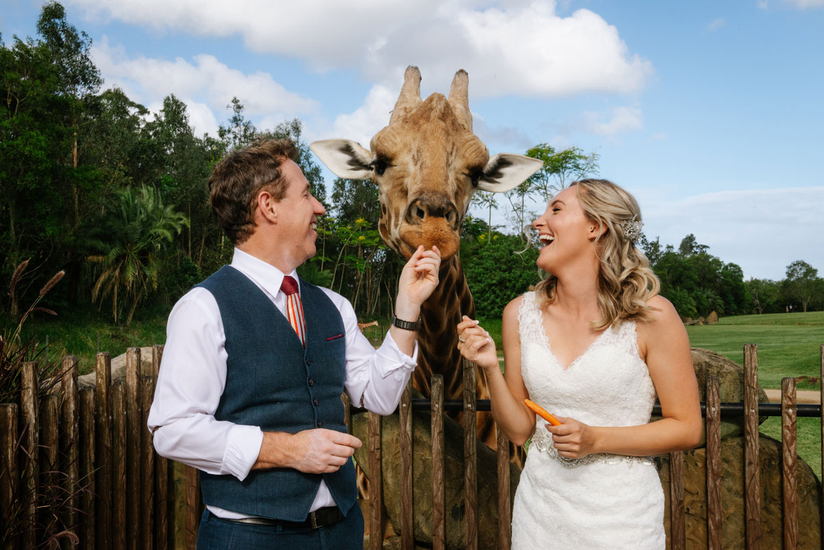 • Private animal experience for the bridal couple. Get up close and personal with some of our beautiful animals at Australia Zoo. Feed one of our gorgeous giraffes while our professional wedding photographer captures the action.